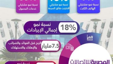 المصرية للاتصالات : نمو الإيرادات بنسبة 18% وزيادة قاعدة عملاء الثابت والمحمول والإنترنت